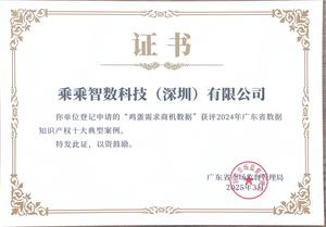 在数字科技领域,先后获得蛋价系统、商机系统、订单系统等多项软件著作权登记证书、质量管理体系认证、多项发明专利证书。乘乘智数入驻深圳、广州数据交易所,并成为全国首批获得统一制式数据知识产权登记证书的企业。